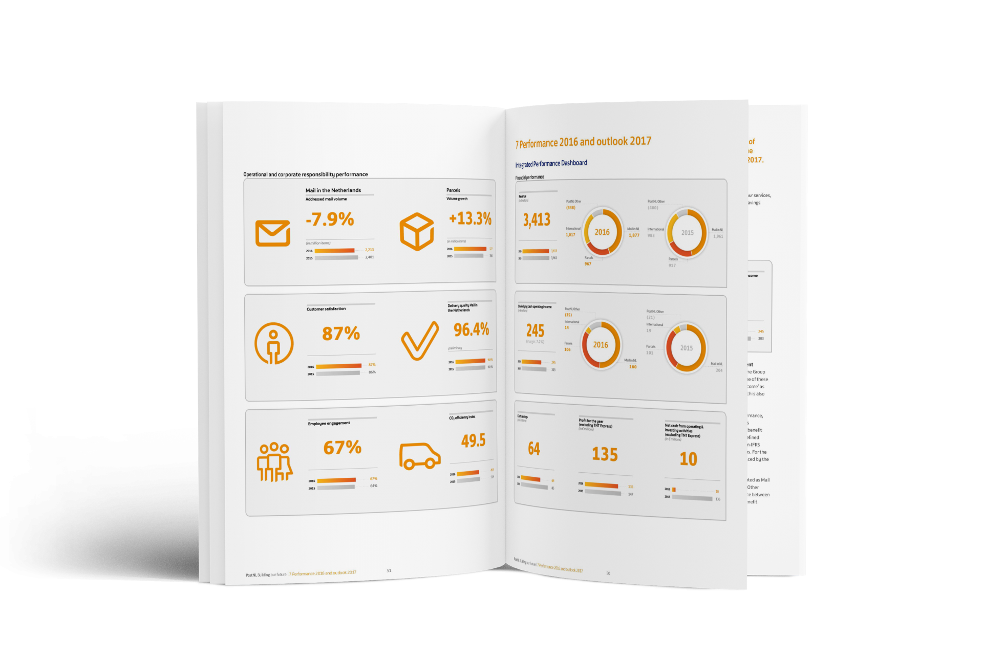 The collaboration covers brand strategy, concept, design, technical platform and production. The fully interactive online annual reports for 2014 and 2015 contained a wide range of media: custom made photography, films, animations, infographs, and interactive graphs. Strong visual stories bring light to PostNL’s results and strategy from a fresh angle: PostNL makes your life easier. For the 2016 report PostNL combined their PDF version containing rich infographs with storytelling on their corporate website. The GRI4 reports of listed company PostNL are produced using ART, our Advanced Reporting Tool, which Mattmo has developed in-house and perfected over the years. View their annual report 2016.